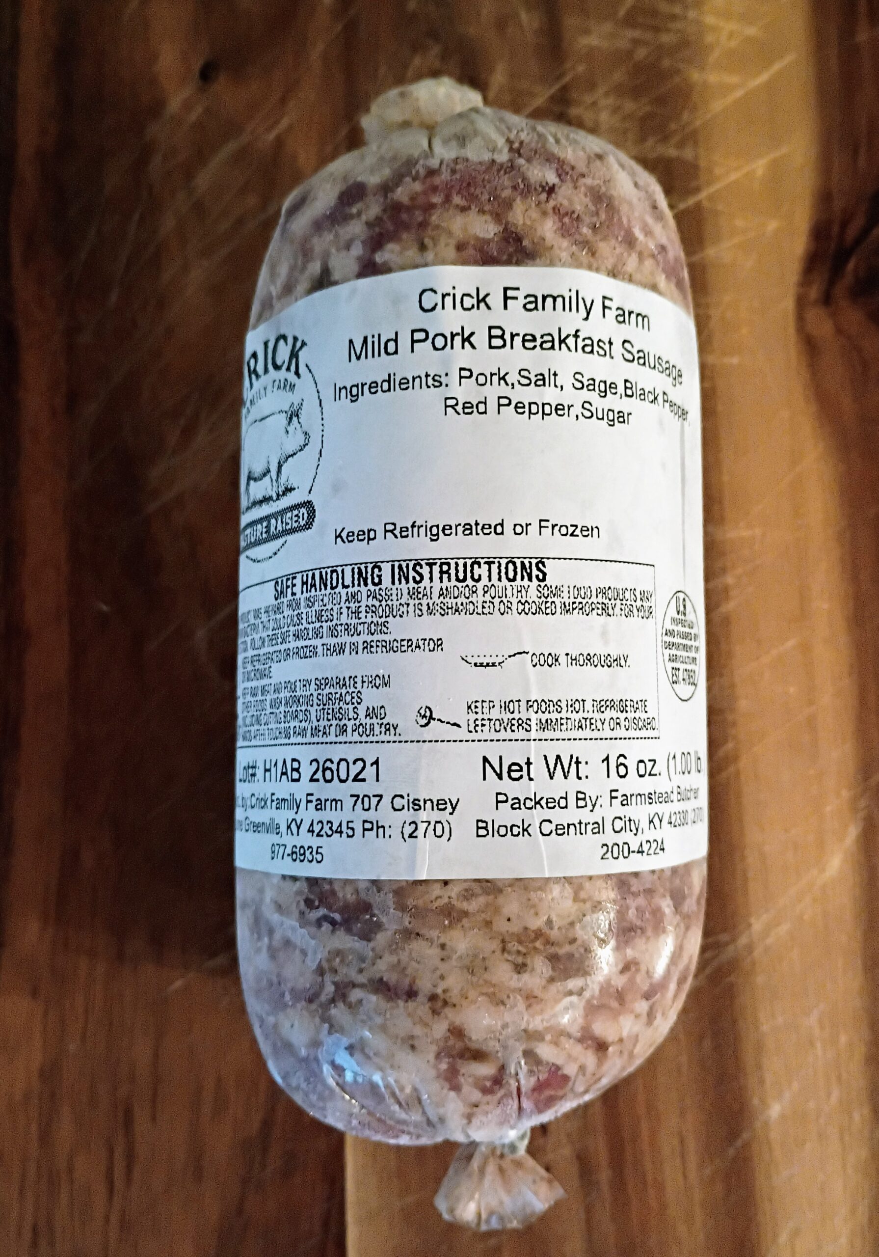 Pasture-raised mild pork breakfast sausage in one pound rolls.